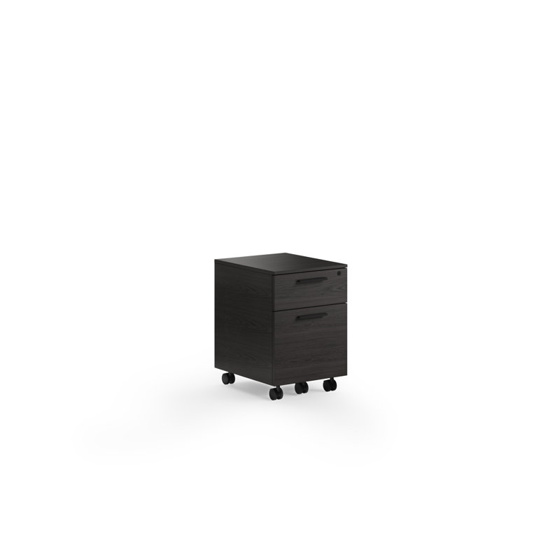 The Linea mobile file pedestal features locking wheels, a letter/legal-sized file drawer, and a top supply drawer. Perfect under a Linea desk or used as a mobile printer stand. BDI Color: Charcoal Stained Ash