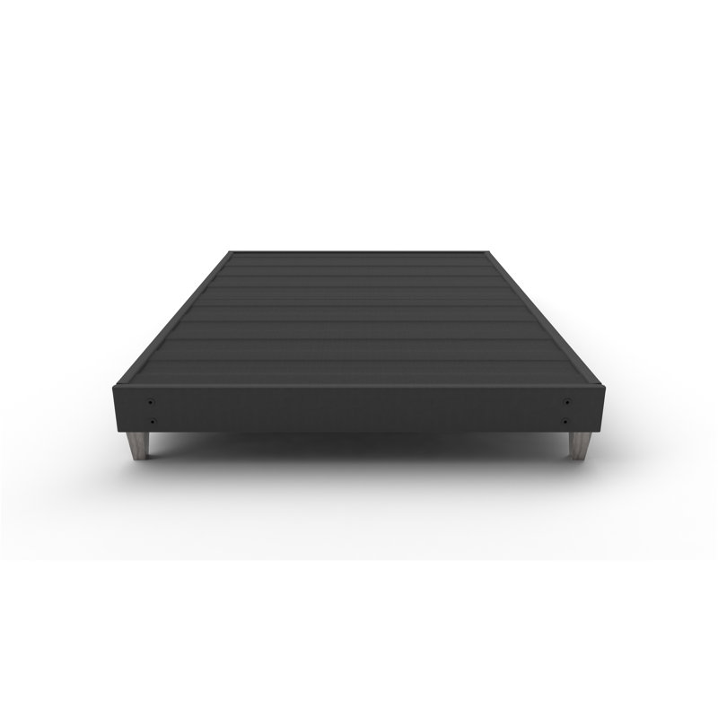 Simple, fast, and stylish! This Express Bedframe is a breeze to setup and eliminates the need for a box spring. Upholstered in a dark gray fabric with faux wood-like gray legs. Compatible with all mattresses - Eliminates the need for a box spring.- Under bed storage; 6“ of clearance for extra storage in the bedroom- Do not sit on the side of the bed to avoid a tipping hazard - Non-skid mats are recommended to keep mattress in place (not included) - Place mattress evenly up on the bedframe – Use caution if the mattress moves out of place to avoid injury.- Meets the requirements of 16 CFR Part 1633 – Federal Flammability (open flame) Standards. Blissful Nights Size: Twin