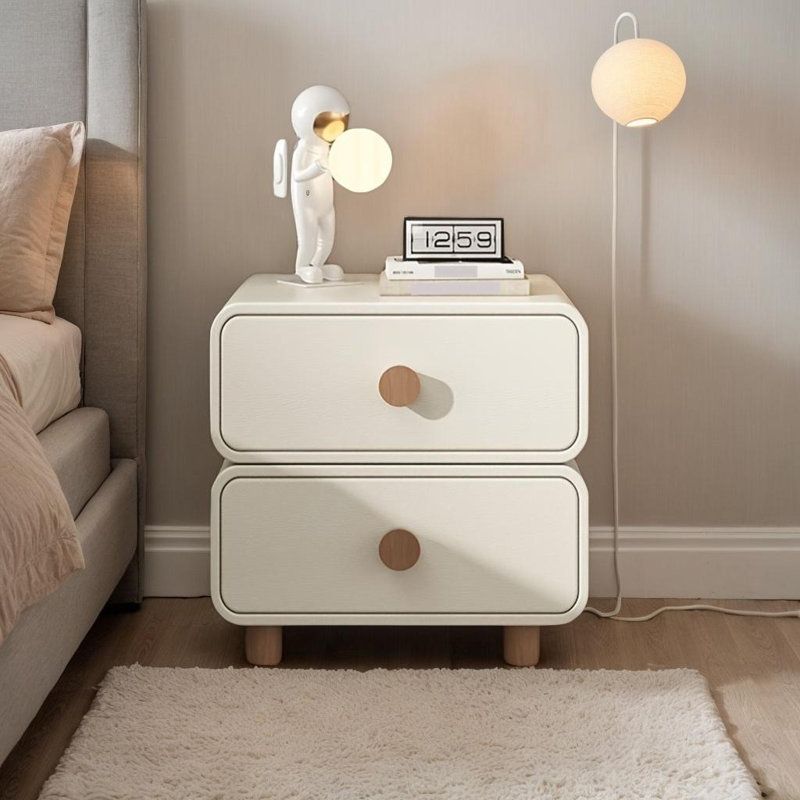 Modern Nordic Style Wooden Nightstand with Dual Drawers,Off white
