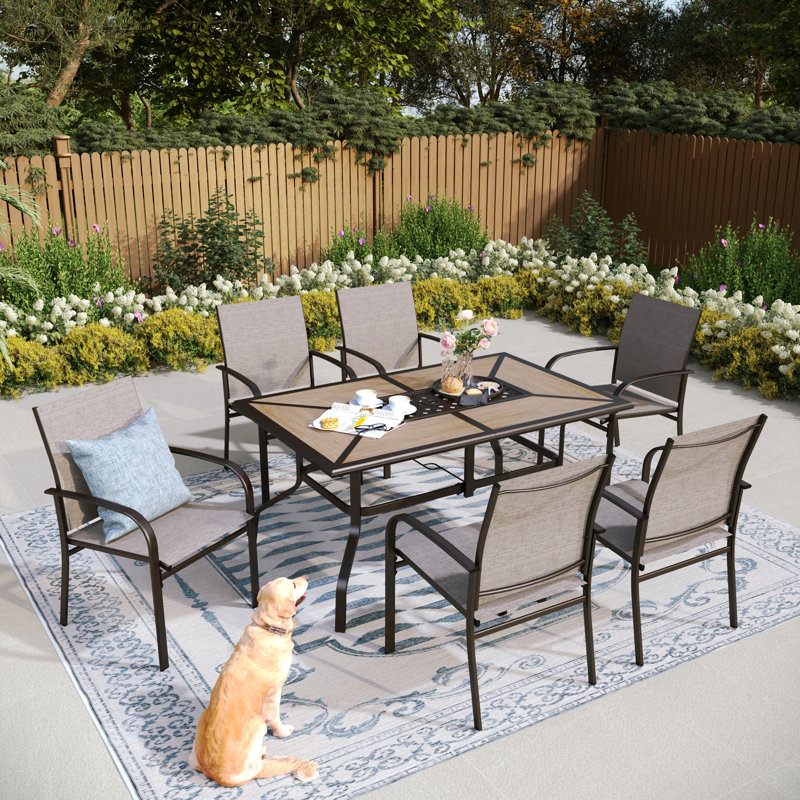 Escape the indoors and relish your outdoor living space with our patio dining set. Sling patio chairs offer comfort in a stylish presentation with their relaxed design. Made of steel frame with durable, weather-resistant fabric for years of use. The quick-dry fabric is completely weather-resistant with UV protection. It matches with one dining table for 6 persons to gather your family or friends at any time in your deck, garden, or backyard. Lark ManorLark Manor