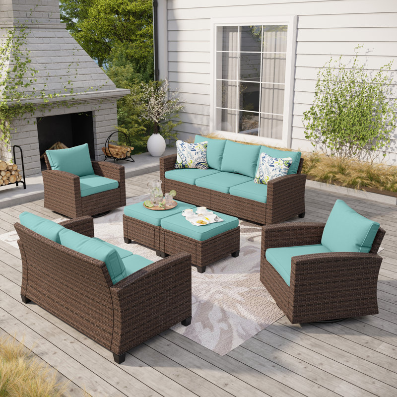 | 9 - Person Outdoor Wicker Patio Conversation Furniture Set with Swivel Chairs | |