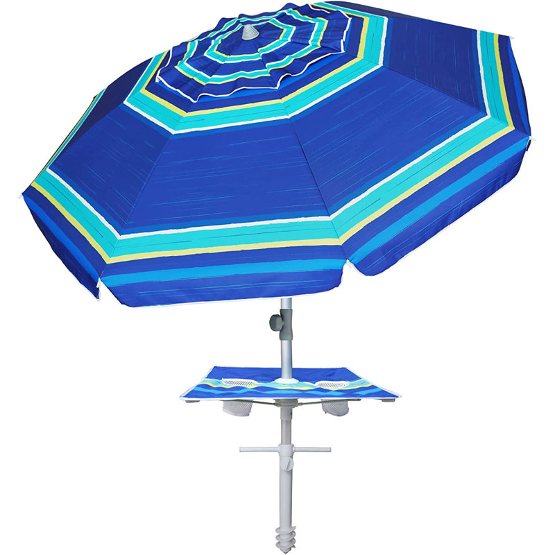 Save on 7Ft Heavy Duty HIGH Wind Beach Umbrella With Sand Anchor, Integrated Built-In Table & Tilt Sun Shelter, UV 50+ Protection Outdoor Sunshade Umbrella Wi