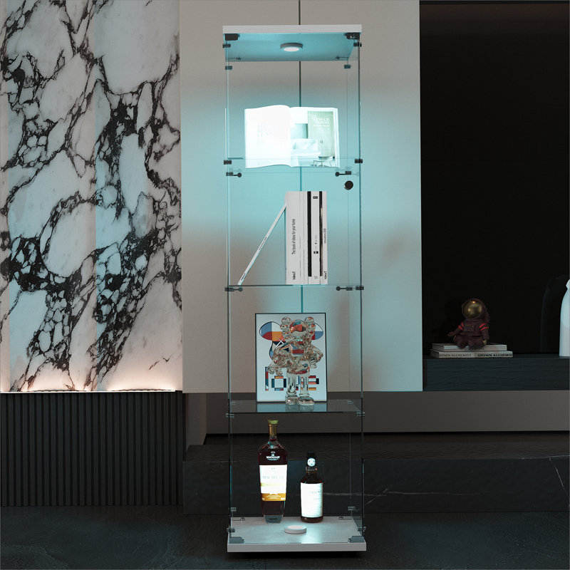 | LED lights Glass Display Cabinet 4 Shelves with Door, Floor Standing Curio Bookshelf | |
