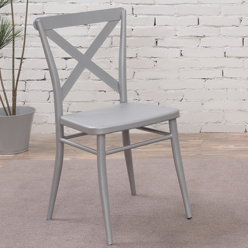 The classic x-shape back and simplistic structure of this metal cross-back side chair scream cozy farmhouse, while the metal frame brings out the hint of industrial flair. Available in three basic colors, there is no denying the utility of this one-of-a-kind chair. Darby Home Co Color: SilverDarby Home Co