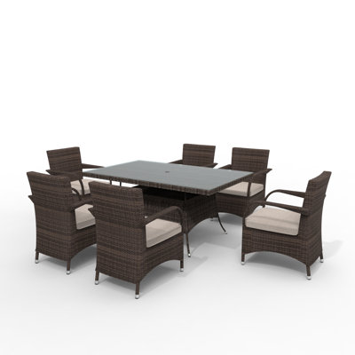 | Harland Rectangular 8 - Person 84" Long Power Coated Aluminum Dining Set | |