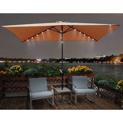 This 9' Cantilever Umbrella is an exciting cantilever umbrella that opens up tremendous possibilities for any space. The large 9-foot canopy turns 360 degrees to offer the most dramatic shade potential. With a stainless steel cable crank system and a standard base with pre-drilled ground anchor holes, this tough design will stand up to the rigors of use. It is recommended to use at least 100 lbs of weight on the base of the frame that is not anchored to the ground. California Umbrella Fabric Color: Terrace Sequoia PerformanceCalifornia Umbrella