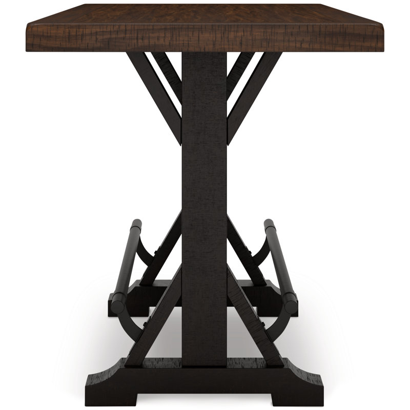 A high-style choice for smaller spaces, this counter height dining table serves up the best in rustic farmhouse living. The table's two-tone finish pairs a brown wood-tone top with a rustic black base for a double helping of charm. Black metal footrests add such a distinctive twist. Williston ForgeWilliston Forge