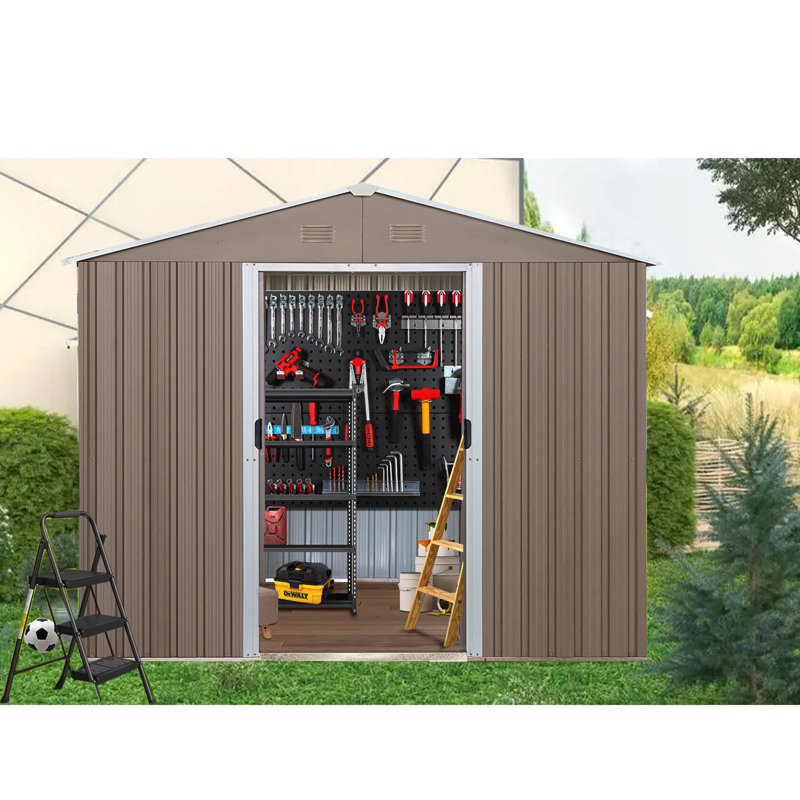 The metal storage sheds is a wonderful choice for outdoor storage. It is made of galvanized steel coated with eco-friendly painting, which is durable, waterproof rust-proof, and suitable for long-term use. The sloping roof can effectively prevent the accumulation of rain and snow, and can effectively protect your storage security. In addition,the spacious double-door design makes this shed easy to access. The side window and air vents provide natural light and proper ventilation, making it a practical and stylish addition to your yard. Enjoy the durability and classic design that keeps your outdoor space organized and appealing throughout the year. GatziesGatzies