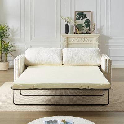 Indulge your mid-century modern nostalgia with a contemporary twist. Shown in an attractive upholstery in a timeless texture. This Sofa is available in a myriad of color selections. Contemporary tapered peg legs and a linear profile lend themselves to serene comfort perfect addition to small spaces. Regarding Sofas and Love seat colors, Solid fabric colors may have light variance in color due to the coloring process. Our sofas are uniquely packaged for ease of shipping and unpacking. remove the sofa's cushion base and turn upside-down. Underneath you will find a zipped area. Unzip the lining and you will find: Legs, Assembly Kit, Cushions/pillows, and Arms. Corrigan Studio Fabric: Beige VelvetCorrigan Studio