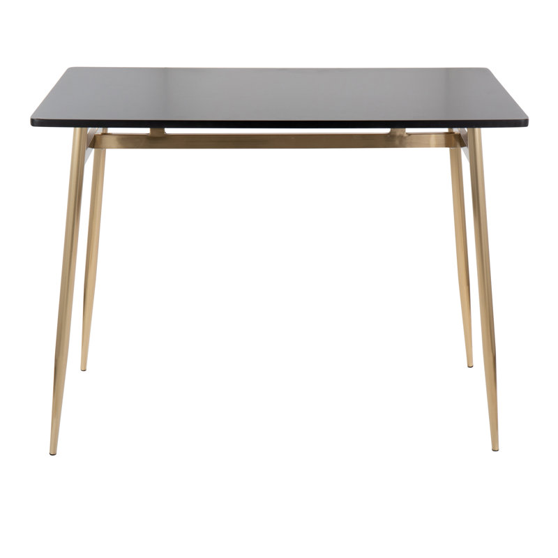 This modern counter table brings graceful glam to your dining area. With its simple silhouette and striking metal legs, this table effortlessly enhances any space. The sleek engineered wood top and steel base create a harmonious blend of materials, while the rectangular design comfortably accommodates four guests. You can choose the color combination that best suits your style. Gather around this elegant counter table for memorable meals and lively conversations. Wade Logan Top Color: Black, Base Color: GoldWade Logan