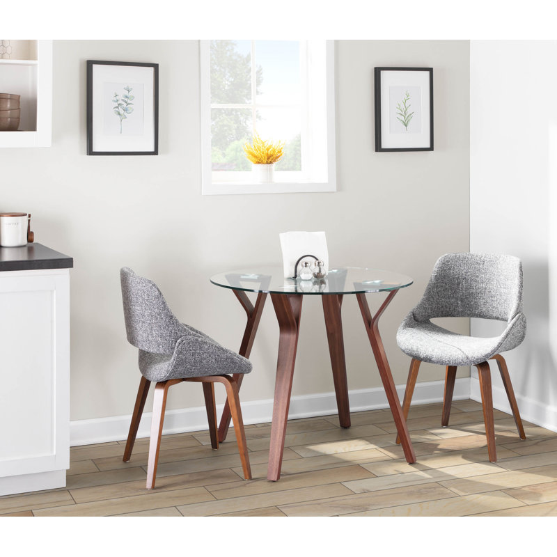 With a simple and sleek table, and an accent of comfortable chairs, the Hsa round-fabrico dining set by George Oliver will be a great addition to a modern kitchen or break room. With a mid-century modern styling, this is a beautifully curated set to make life stylish and easy. With a seating capacity of two, this dining set would be perfect in any dining room, kitchen, or breakroom. George OliverGeorge Oliver