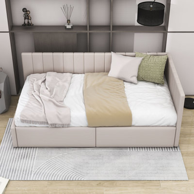 Indulge in the ultimate blend of comfort and functionality with our Twin Size Upholstered Platform Bed with Storage and Drawers. Crafted with elegance and durability in mind, this bed is designed to enhance the look and feel of your bedroom while providing practical storage solutions. The soft, plush fabric adds a touch of luxury to your sleeping space, while the sturdy platform base ensures a stable and supportive night's rest. Beneath the bed, you'll find spacious drawers that offer ample storage for clothes, linens, books, or other bedroom essentials. The drawers glide smoothly on heavy-duty runners, making it easy to access your belongings whenever you need them. Red Barrel Studio Color: BeigeRed Barrel Studio