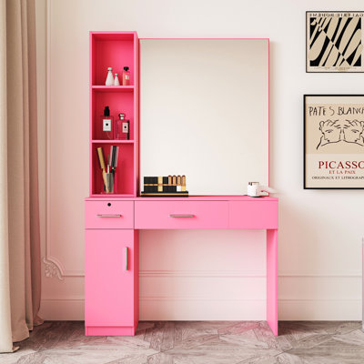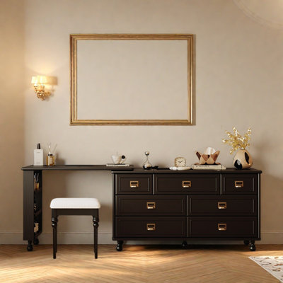 The vanity set features a high-quality glass tabletop, three lighting modes, an LCD touch display, Bluetooth, and charging ports. It also includes a Hollywood mirror, 13 storage drawers, and a built-in LED light strip. The Hollywood Mirror Built-in two speakers for surround sound and a dimming knob for light control. VanitiiVanitii