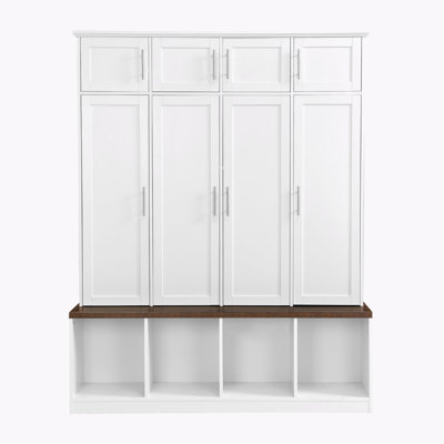 | Versatile Farmhouse Hall Tree with Multiple Storage Options and Mobility | |