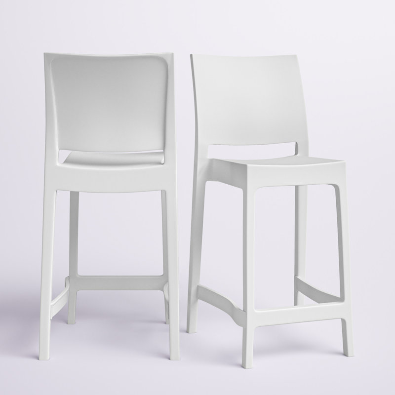 This 2-piece set of patio bar stools lets you enjoy your favorite beverage poolside or on your deck. Each stool is crafted from polypropylene, so it's resistant to UV rays, staining, water, and mildew. A sleek, solid finish of your choice makes it super-easy to match with almost any style or color scheme you want. This set features a square seat, a convenient footrest, and a full back that leans at a slight angle. Best of all, these stools are stackable for hassle-free storage when not in use. No assembly is required. Hashtag Home Color: White, Seat Height: 25.5"
