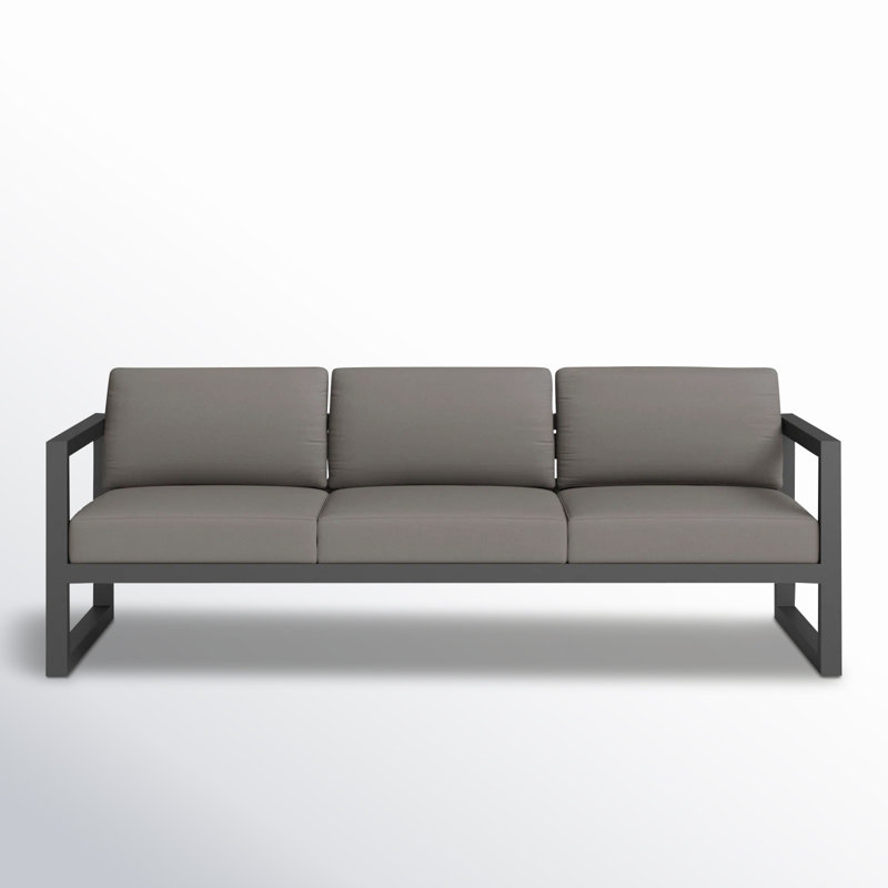 With thick cushions + bold lines, this patio sofa creates a stylish retreat for three. The frame is crafted from rust-proof, powder-coated aluminum and showcases a modern, open design. Quick-dry foam cushions offer a soft place to land, and they're wrapped in Sunbrella fabric that's water- and UV-resistant for holding up to the elements. Plus, their removable covers are machine-washable for an easy refresh. Works well solo or combined with other pieces from the collection. AllModern Cushion Color: Canvas Charcoal Sunbrella Canvas, Frame Color: Slate