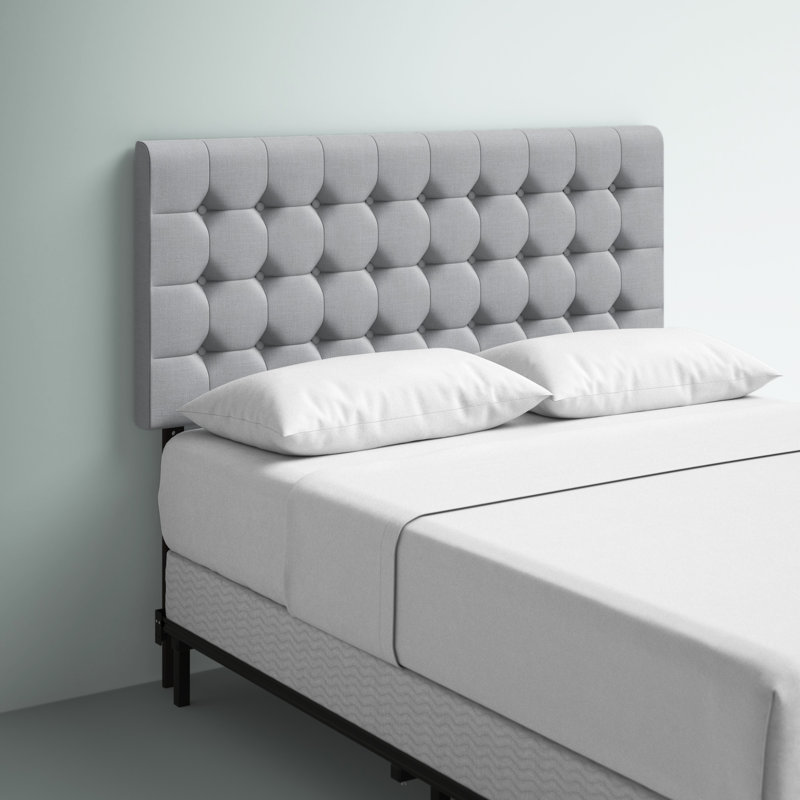 Anchor your restful retreat in understated elegance with this linen-upholstered queen headboard, sophisticated addition to your furniture arrangement. Its deep button tufts add a touch of timeless style to any space while its neutral hue pairs perfectly with crisp white wallpaper for a complementing look. Add this piece to the master suite to complement a clean and contemporary aesthetic, then match it with patchwork bedding for an unexpected pop of pattern. For an artful touch, hang sunburst wall decor above this piece for a bold focal point, then roll out a chic shag rug to tie together the space. Modway Color: Gray