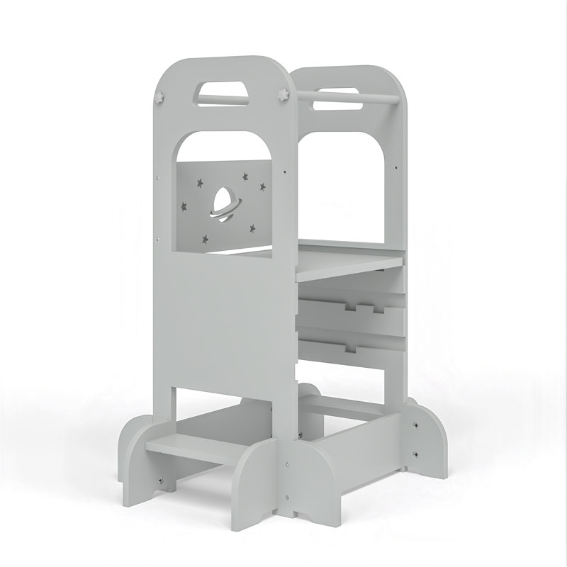 Our adjustable step stool with the ability to set the child's standing platform at 3 different heights, so that they can benefit from the best fitting standing position as they grow for years to come. Our classic step stool is that fulfils multiple-functions, convertible options even come with a matching step-stool and seat. This convertible step stool is clever design allows you to quickly stand and seat from step stool to a table & stool set up in one easy motion; great for use in the kitchen, or for more in depth activities such as mealtimes. The adjustable height step stool tower completely brings innovation to the space and rocket styling while satisfying your design and functional expectations.One step removed from a standard step stool, you have a height adjustable and rocket style step stool . Harriet Bee Color: GrayHarriet Bee